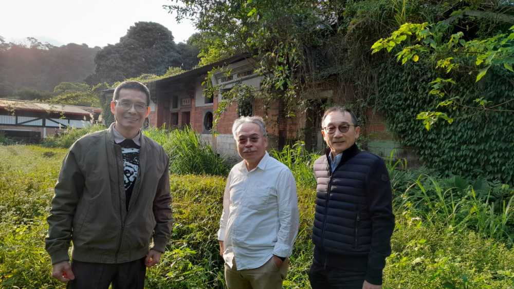▲陳定國後代陳澄聲董事長(右)、高松根教授及鄭朝吉老師,由汐止文化網、汐止社大一起推動保存垂遠堂史蹟拓碑保存活動。(2023年3月,照片 / 鄭維棕)