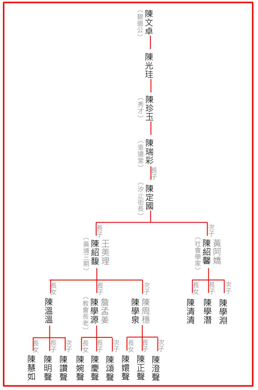 陳厝位於定國山上,於癸卯年春設立,門楣有「垂遠堂」題字,厝齡已經超過一百年。