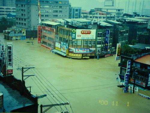 ▲2000年11月1日象神颱風淹水景象,汐止交流道與大同路口淹水情形。