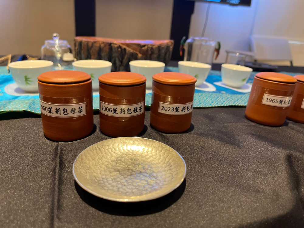 ▲▲建順茶行家族成員蘇博文老師精彩解說建順茶行發展,PPT照片為黃建順。▲現場珍藏超過四十年的珍貴建順茶行老茶葉,這些茶葉就是金,有錢也買不到。(照片 / 鄭維棕)